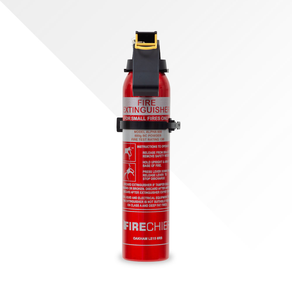 Lightweight 600g BC powder fire extinguisher in aluminium aerosol factory sealed body.